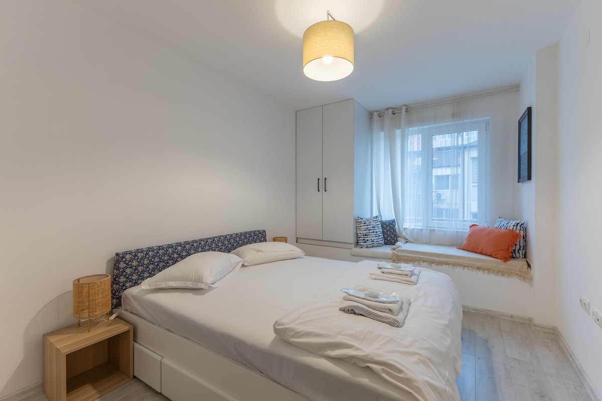 Stay in the center of Varna, just steps from the Cathedral, main pedestrian zone, and Opera House. This modern 2-bedroom apartment in a new building with elevator combines central location, comfort, and a dedicated workspace — ideal for families, business travelers and remote workers